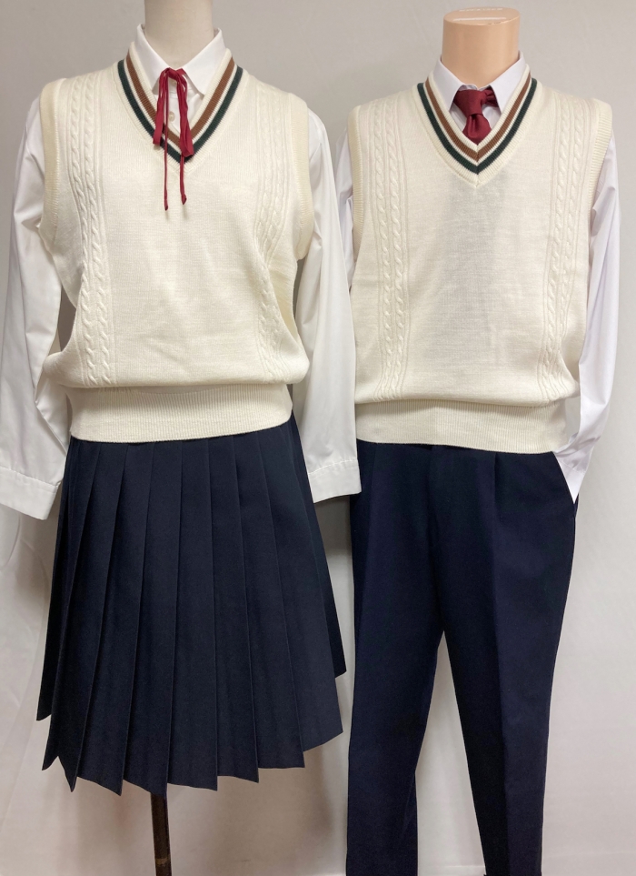女子10| アイテム | 男子 ベスト ¥1,500 シャツ ¥1,200 ネクタイ ¥800 パンツ ¥2,500 Total税込 ¥6,600 (3泊4日まで) Total税込 ¥5,280 (1泊2日まで) 女子 ベスト ¥1,500 シャツ ¥1,200 リボン ¥300 スカート ¥3,000 Total税込 ¥6,600 (3泊4日まで) Total税込 ¥5,280 (1泊2日まで) |