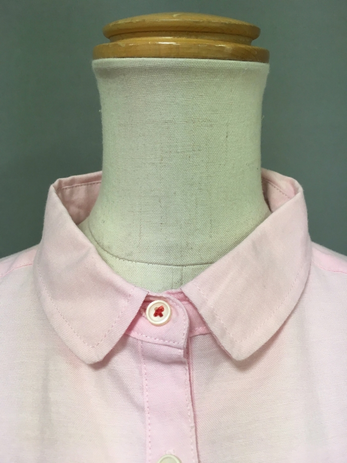 • ピンク半袖シャツ丸襟