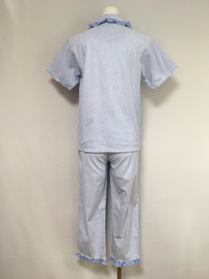 | アイテム | Jane Eyre 綿100% 150サイズ トップス 身幅45cm 裄丈39cm 着丈59cm パンツ ウエスト最大94cm 総丈86cm ストライプ柄 |