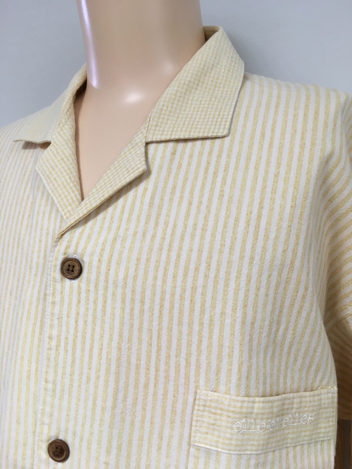 | アイテム | elle et elles 綿100% トップス 身幅56cm 裄丈80cm 着丈75cm パンツ ウエスト最大102cm 総丈100cm ストライプ柄 |
