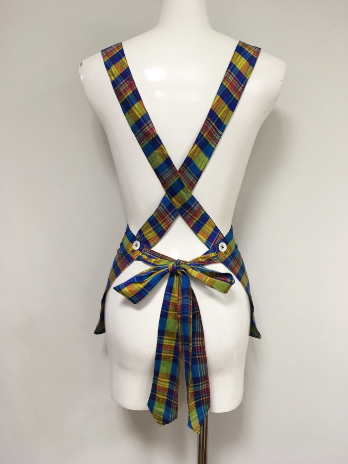 ブルー胸当てエプロン