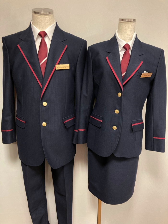 | アイテム | ホテルマン ネクタイ ¥800 シャツ ¥1,200 ジャケット ¥7,500 バッジ ¥800 パンツ ¥4,500 Total税込 ¥16,280 (3泊4日まで) Total税込 ¥13,024 (1泊2日まで) ホテルウーマン ネクタイ ¥800 シャツ ¥1,200 ジャケット ¥7,500 バッジ ¥800 スカート ¥4000 Total税込 ¥15,730 (3泊4日まで) Total税込 ¥12,584 (1泊2日まで) |