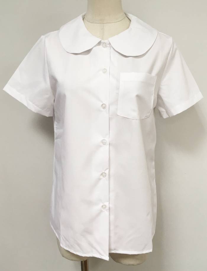 ホワイト半袖シャツ丸襟 全1点||全商品|商品紹介|学生服やセーラー服、事務服などの各制服の撮影用レンタル衣装。コスチューム、水着リースならピージー(PG)へ