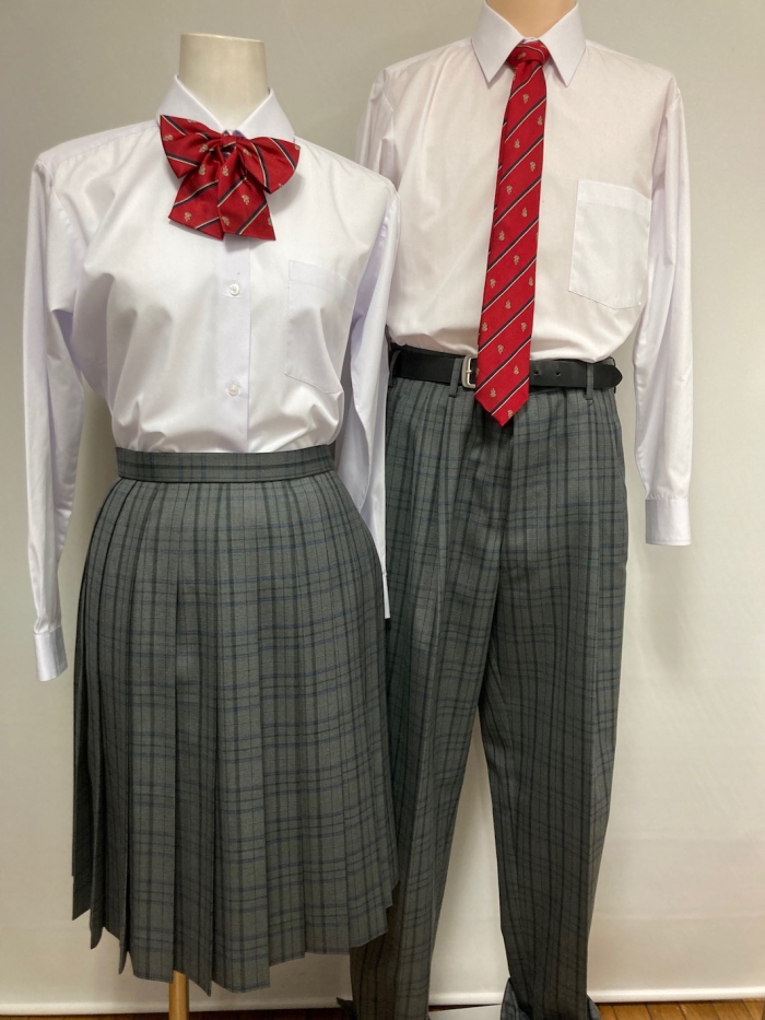 | アイテム | 男子 ブレザー ¥6,500 ベスト ¥1,500 シャツ ¥1,200 ネクタイ ¥500 パンツ ¥3,000 ベルト ¥500 Total税込 ¥14,520 (3泊4日まで) Total税込 ¥11,616 (1泊2日まで) 女子 ブレザー ¥6,500 ベスト ¥1,500 シャツ ¥1,200 リボン ¥300 スカート ¥3,000 Total税込 ¥13,750 (3泊4日まで) Total税込 ¥11,000 (1泊2日まで) |